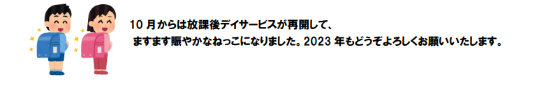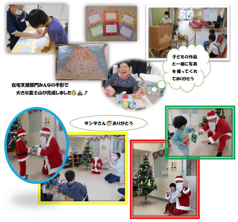 子どもたちそれぞれが、自分のペースで大きくたくましく成長してきた一年を振り返るこの頃。あっという間に年内最後となりました。11月は、療育祭に向けて写真フレームと手形の製作活動や、オルゴールのお披露目会。12月は、ねっこ以外の職員がサンタに扮して登場したクリスマス会など、いつもとはちょっと違う特別な活動に、子どもも大人も一緒にドキドキワクワクしながら楽しむことができました。