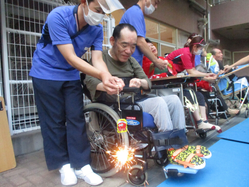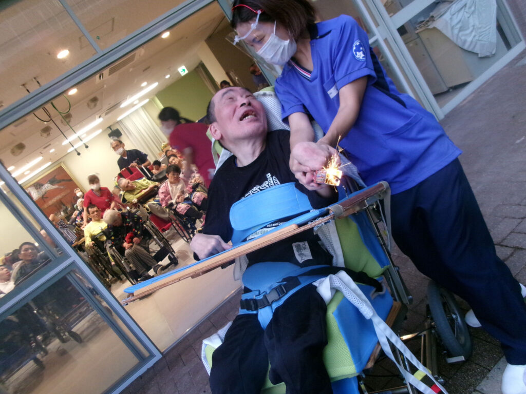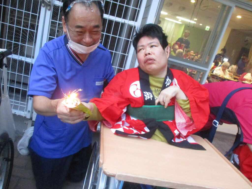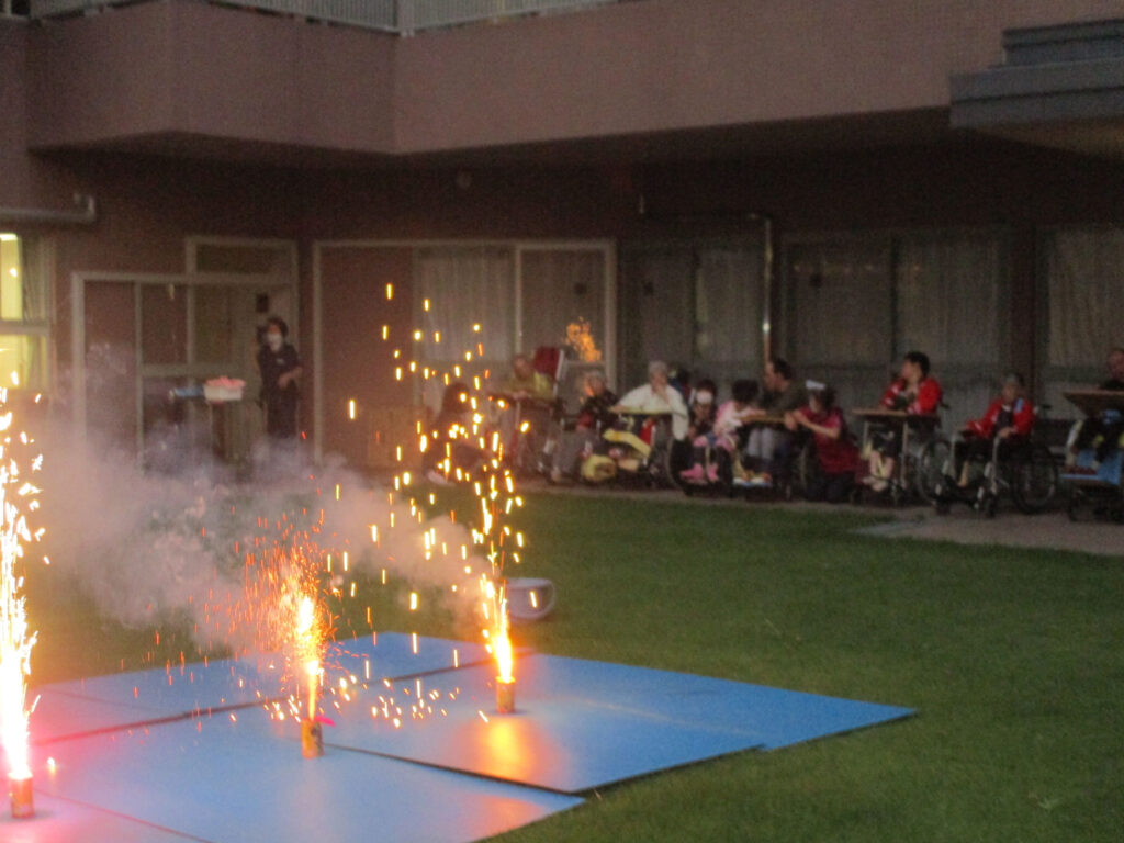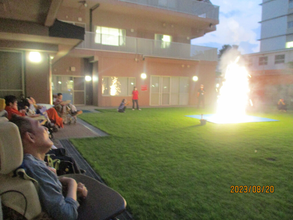 3階病棟では8月20日に全員参加で花火大会を開催しました。綺麗な浴衣を着て参加されたり、花火の音にびっくりしたり、「また来年、花火」と言ってくださったり。皆さんの笑顔でいっぱいの時間になりました。